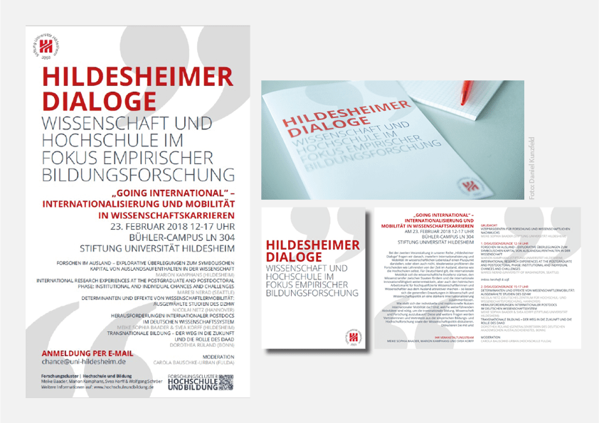 Hildesheimer Dialoge Post author Von Svea Korff Post date 24. August 2021 Gestaltung von Plakat und Programm der Veranstaltungsreihe „Hildesheimer Dialoge“ des Forschungsclusters „Hochschule und Bildung“. ← Netzwerk „Ausstieg aus der Wissenschaft“